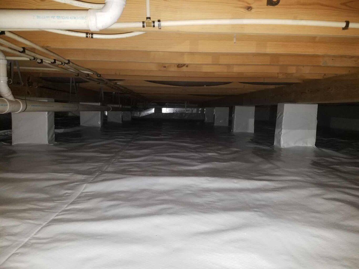 By controlling humidity below 60%, encapsulation stops mold spores from colonizing wood joists and insulation. A sealed crawl space reduces rot risk, preserves floor integrity, and contributes to healthier living conditions upstairs.